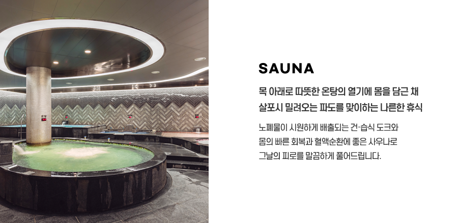 경남 서부 최대 규모의 찜질방까지 다양한 최고급 시설을 체험하고 심신이 조화를 이룬다.