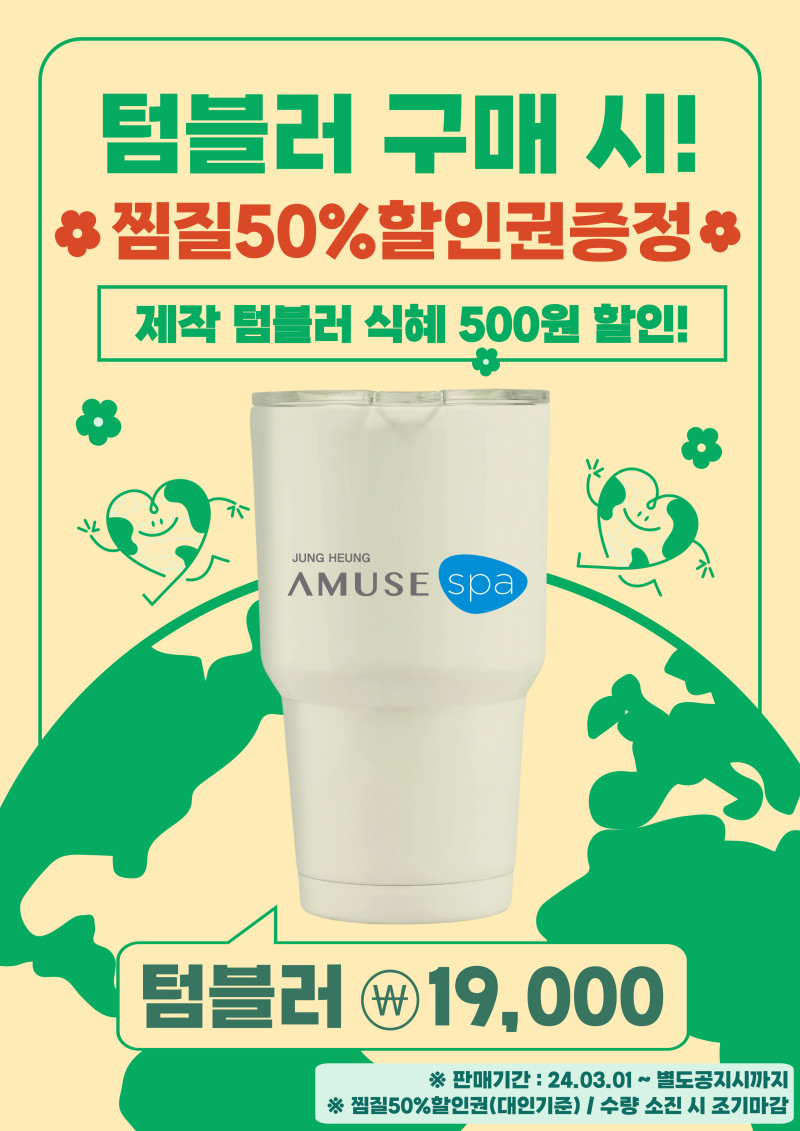 ★어뮤즈 제작텀블러 구매 시 찜질50%할인권 증정★