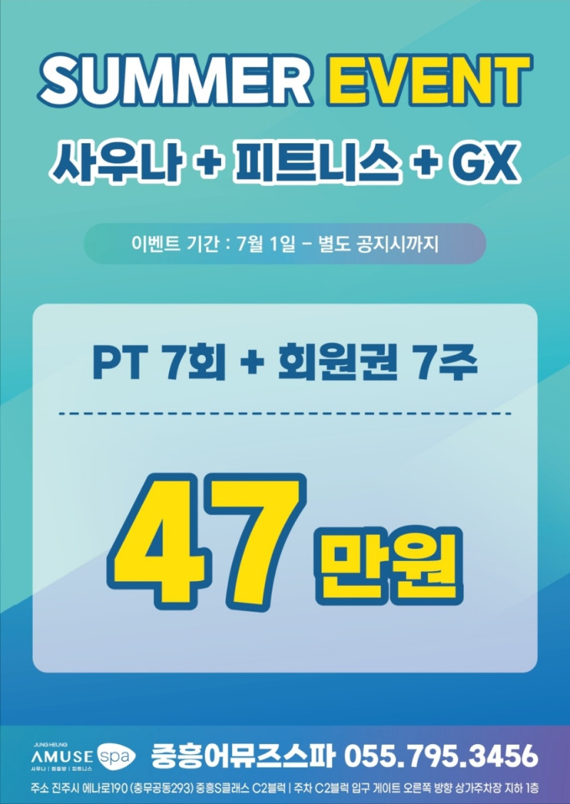 여름 이벤트 (PT 7회 + 회원권 7주)*(7월 1~ 별도공지시까지)