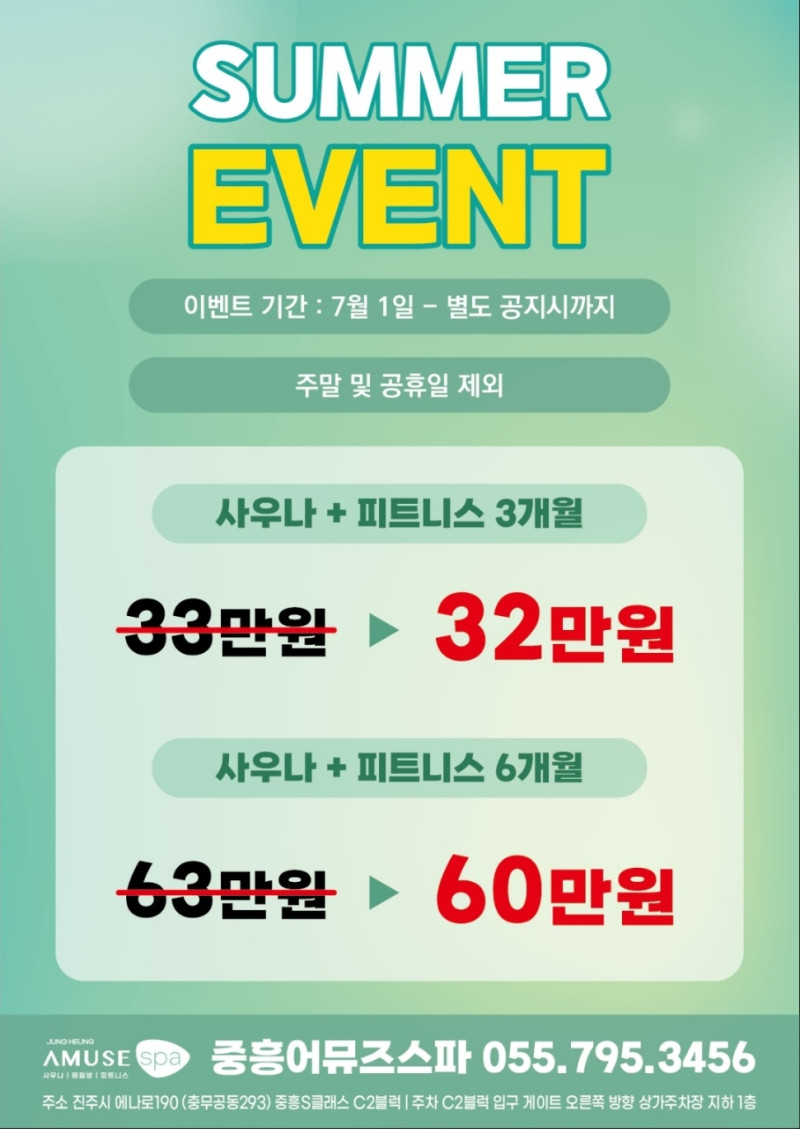 여름 이벤트 (사우나 +피트니스+GX 주중 )*(7월 1~ 별도공지시까지)