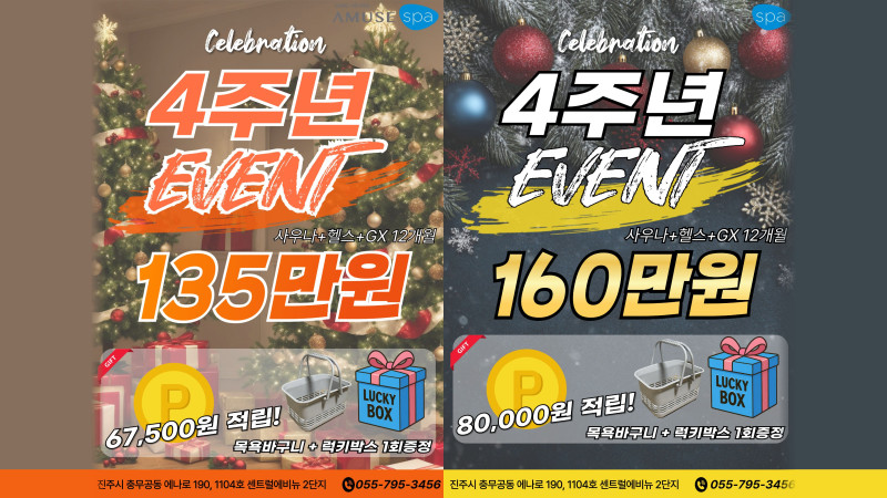 ★어뮤즈스파진주점 4주년 기념 역대급 이벤트!★ 회원권 가입시 포인트 적립에 푸짐한 사은품까지!!