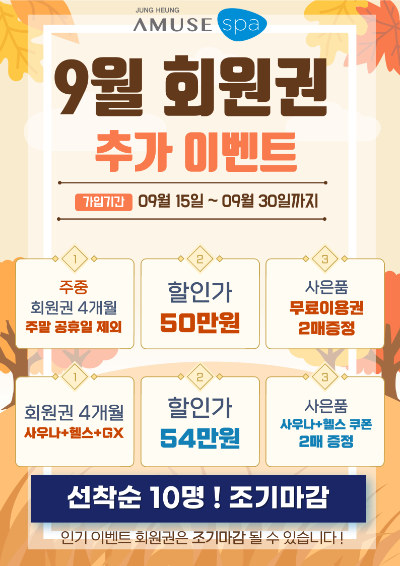가을맞이 특별 추가 이벤트! 어뮤즈스파 진주점 회원권 할인