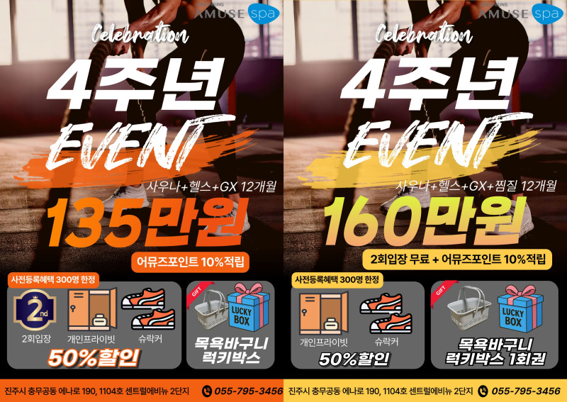 ★★어뮤즈스파진주점 4주년 기념역대급 감사 이벤트 오픈! 12개월 회원권 특별 프로모션★★
