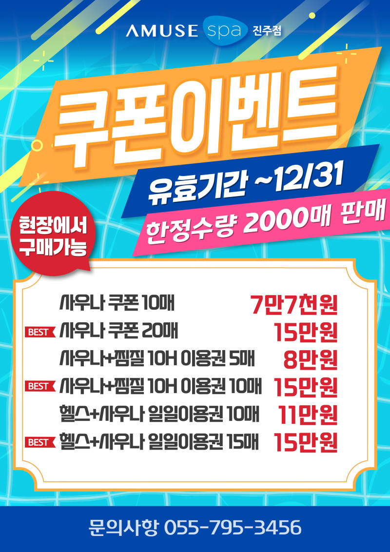 ★어뮤즈스파 진주점 쿠폰 이벤트 소식! ★ 현장에서 결제가능✨