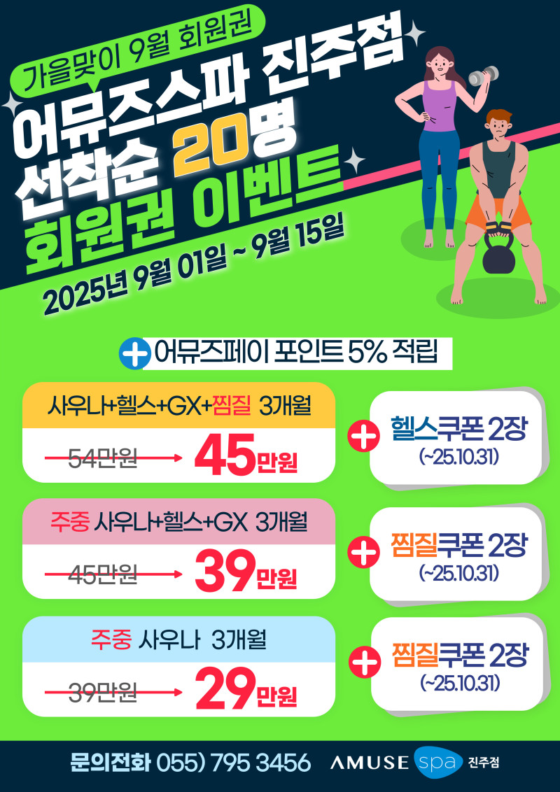 [진주pt/진주사우나/진주피트니스] 가을맞이 특별 이벤트! 어뮤즈스파 진주점 회원권 할인