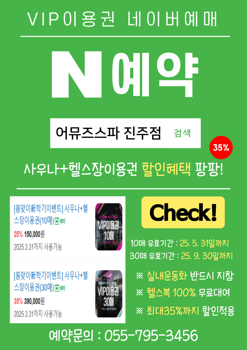 ※ VIP이용권(사우나+헬스장) 10매 유효기간 : 2025. 05. 31일까지