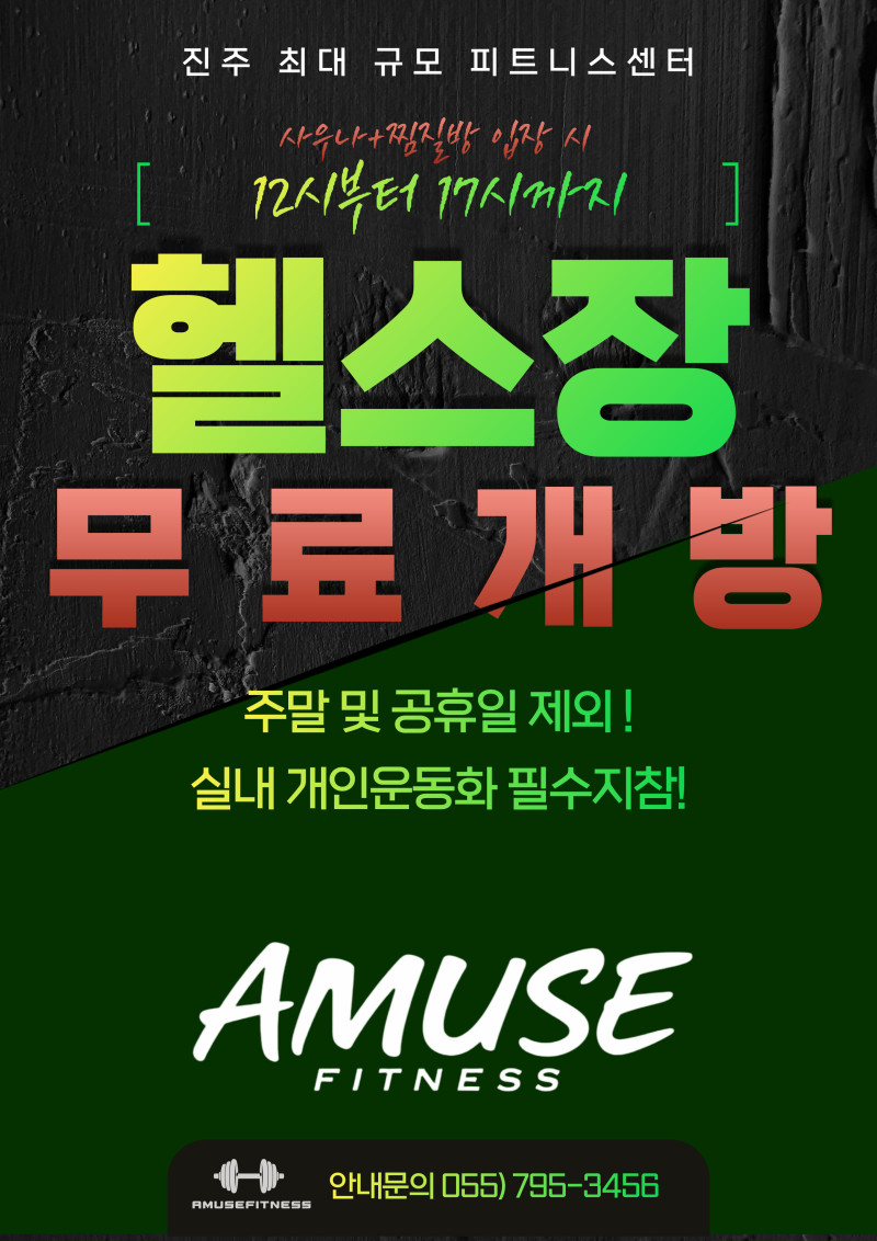 어뮤즈스파 진주점은 4월 한달동안 헬스장 무료개방‼