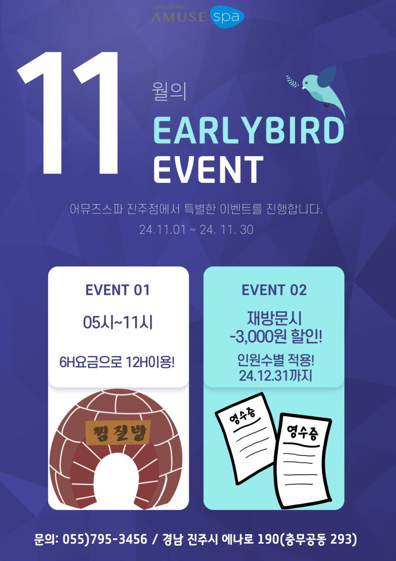 11월 특별한 행사! Early Bird 이벤트를 진행합니다.