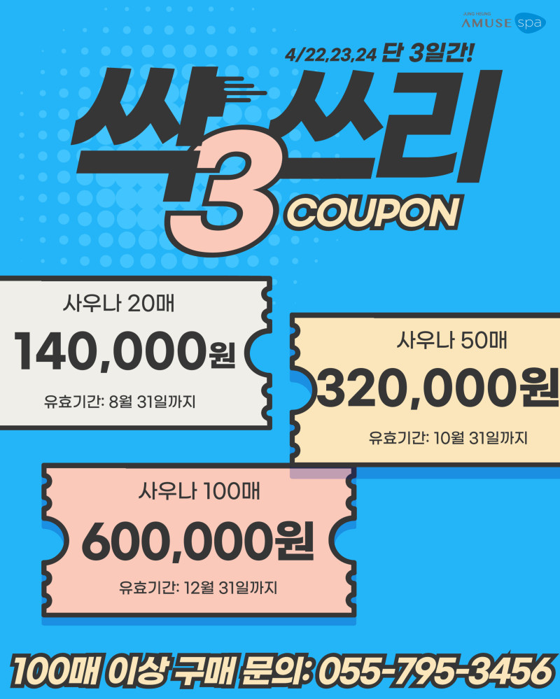 사우나쿠폰 싹쓰리! 단3일간!