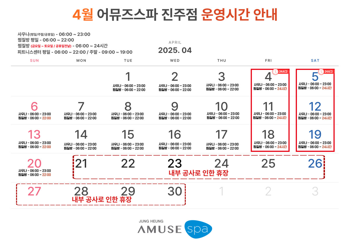※ 어뮤즈스파 진주점 영업시간 변경 안내 ※
