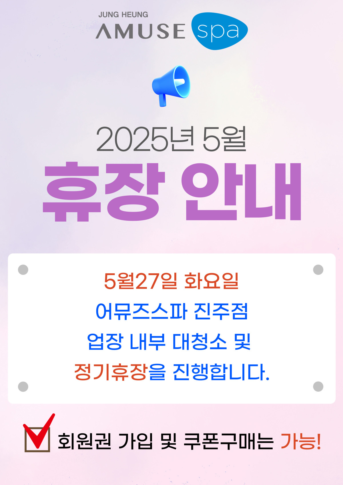 ★어뮤즈스파 진주점 5월 휴장일 안내★