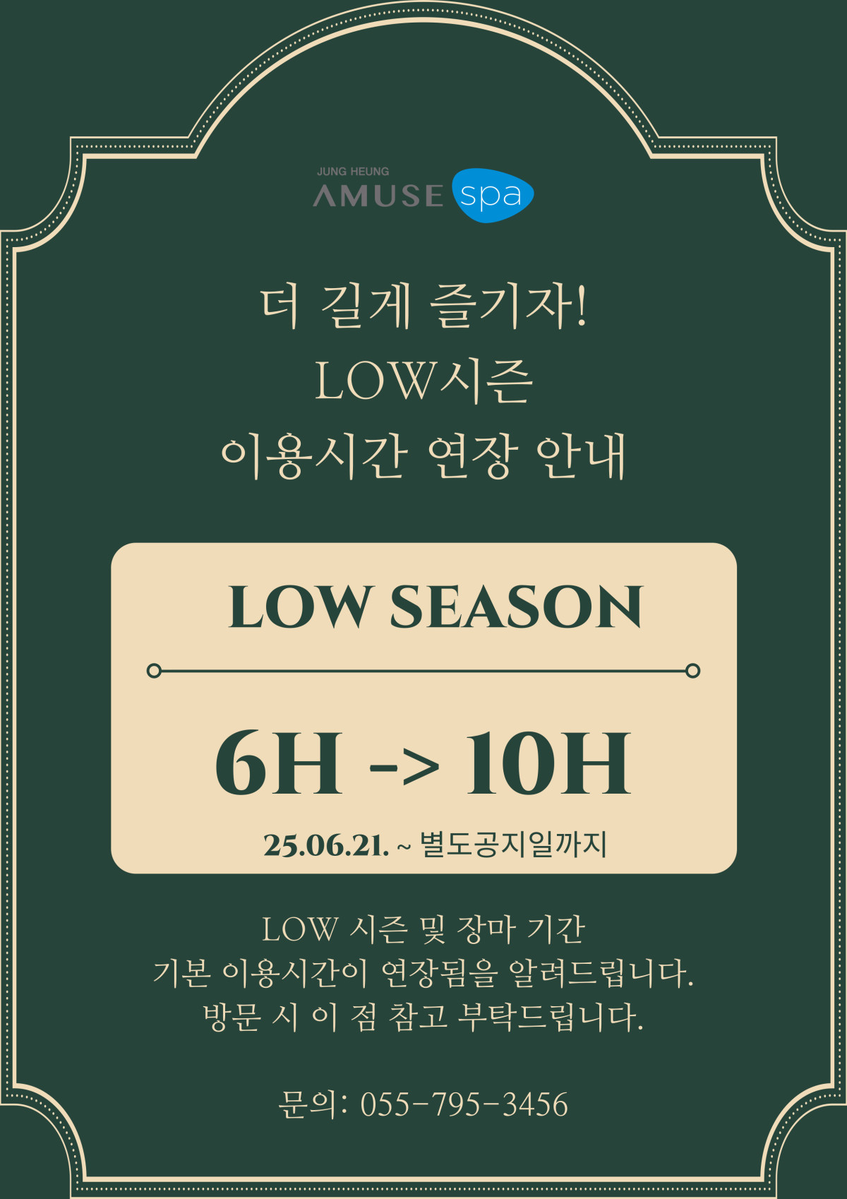 LOW시즌을 맞이하여 "가격은 동일하게 ! 이용시간은 연장" 해 드리고자 합니다.