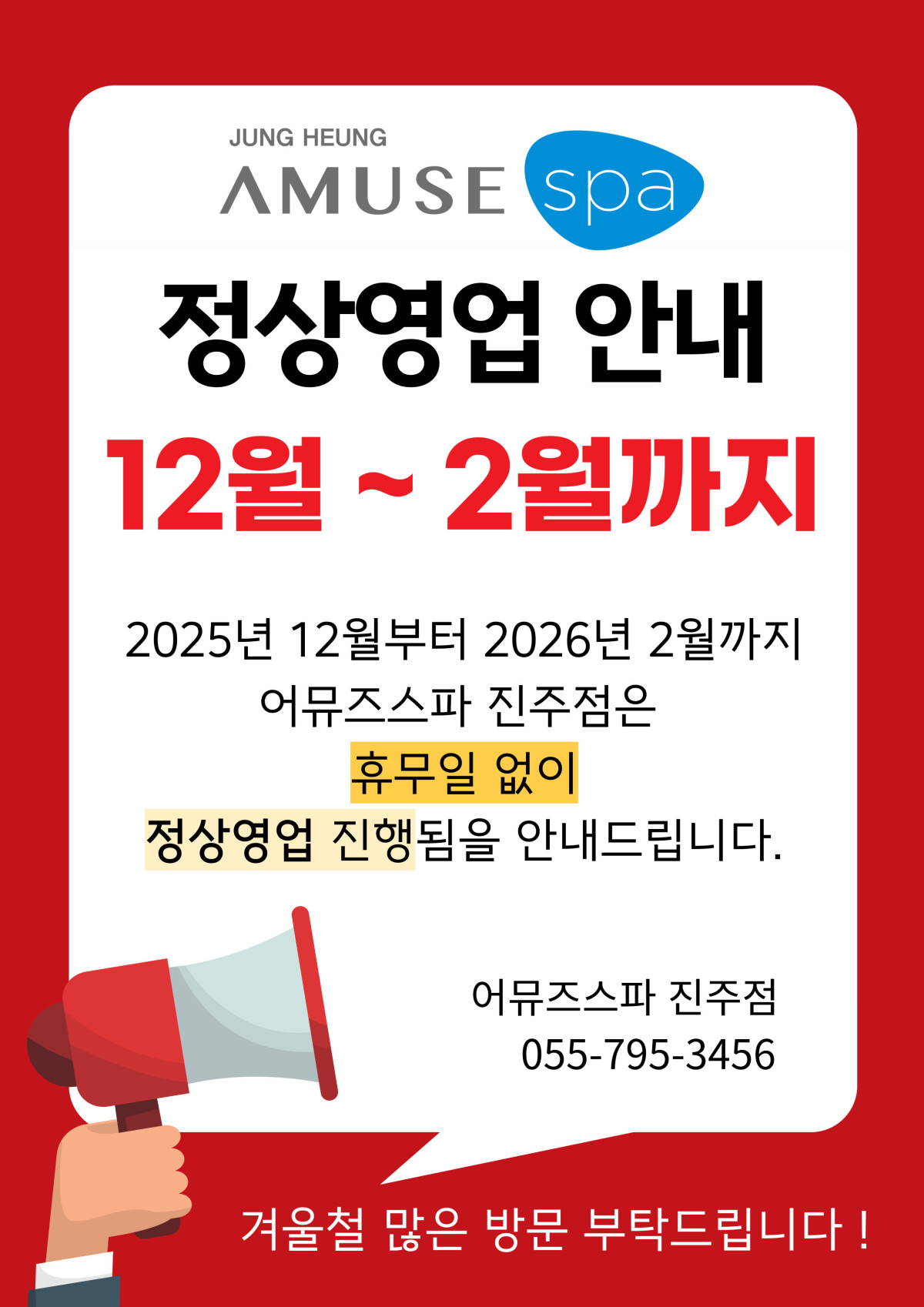 ※어뮤즈스파진주점 겨울시즌 정상영업 안내(25년12월~26년2월)※