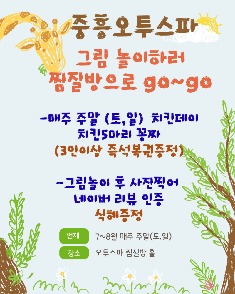 주말 치킨 데이, 그림놀이 하러 찜질방으로~~